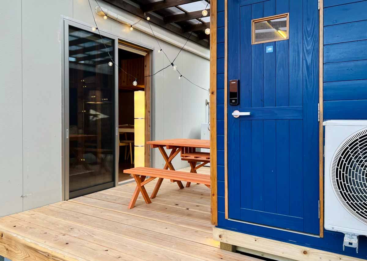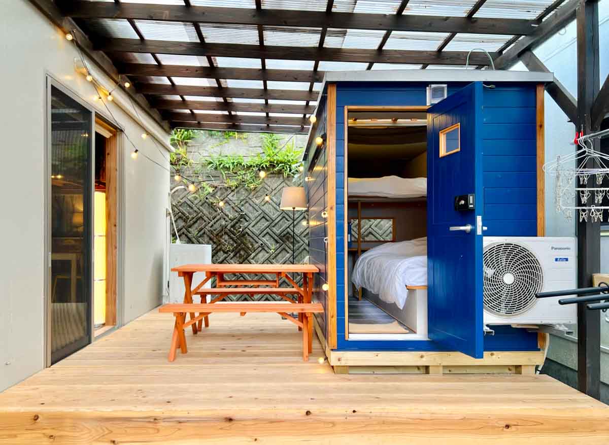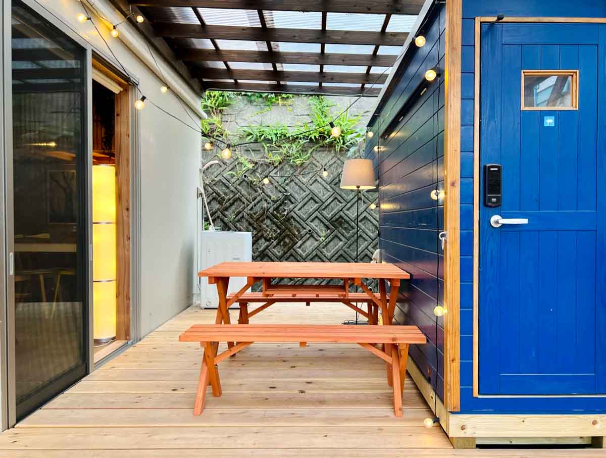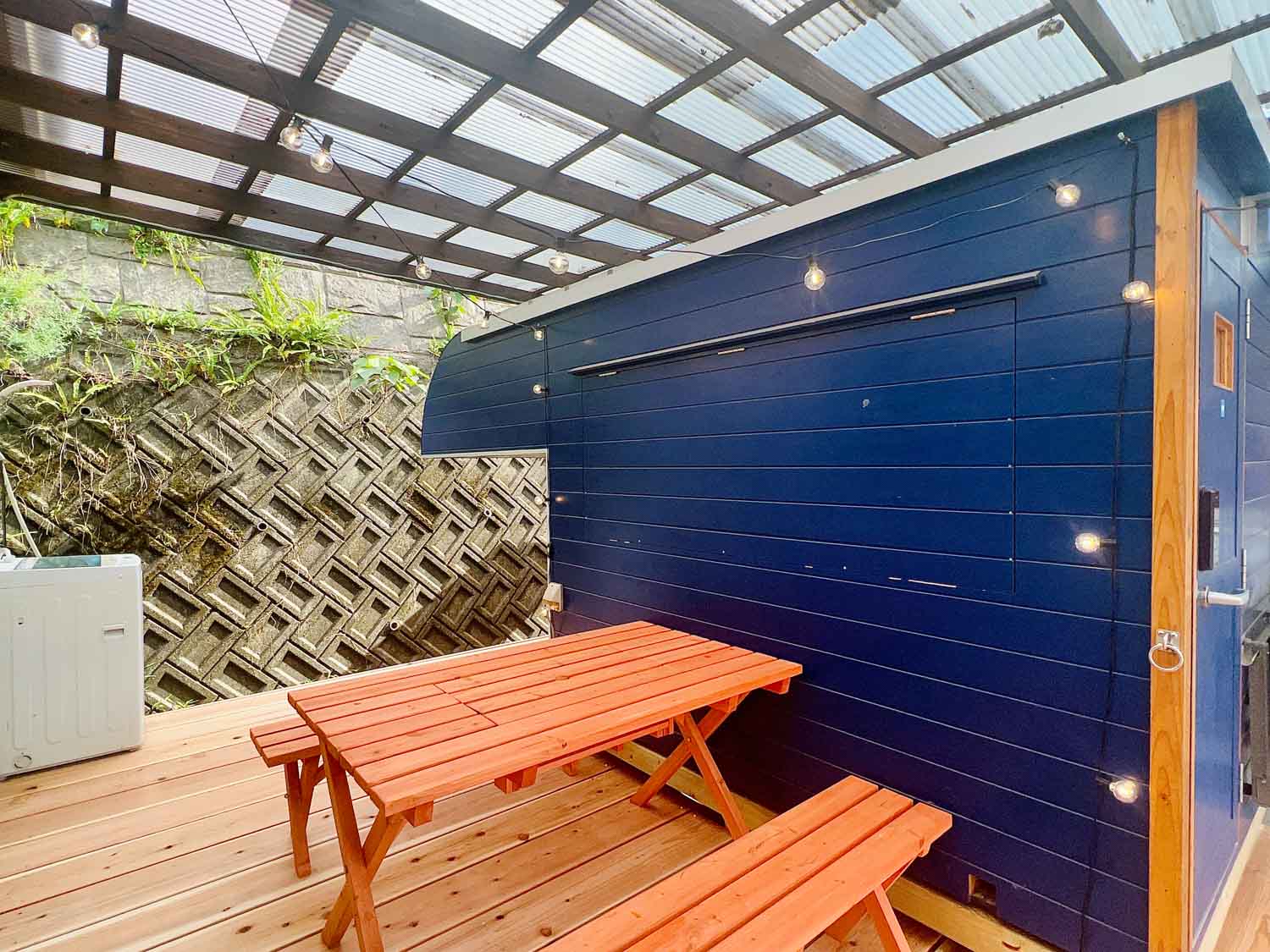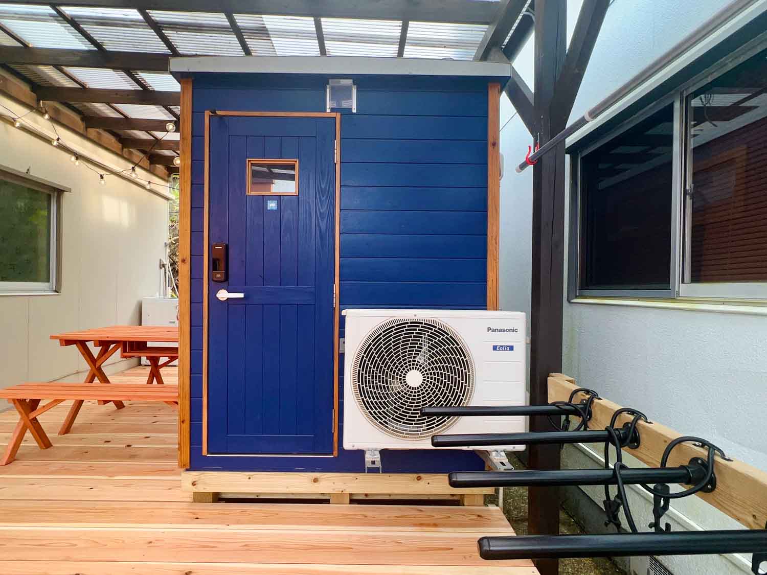 サーフキャンプ103は、一軒家とタイニーハウス(離れ)という二つの部屋があります。また母家と離れの間には、デッキスペースがあり、バーベキューもできます(BBQセット有料貸出可能)。コンパクトでありながら異なる2つの空間を使って、時には外のデッキスペースで、バーの様にワイワイと、時には静かにチルな音楽でもかけながらゆっくりと、いろんな楽しみかたのある、おもしろ一棟。一軒家なので、隣を気にせず家族やグループでの宿泊に最適です。またキッチン・洗濯機もあるので、長期滞在にも最適です。外用シャワー、サーフボード置き場も完備。ウェットスーツも外で洗えます。NETFLIX見たい放題(民放は映りません)。1人用サウナ付き