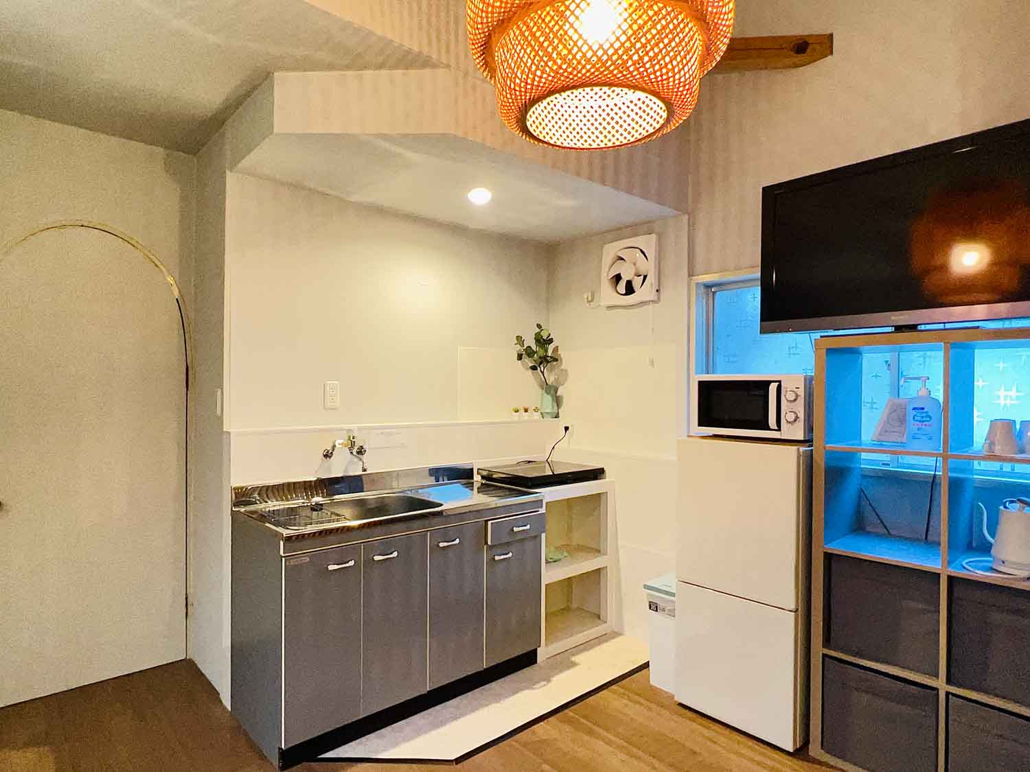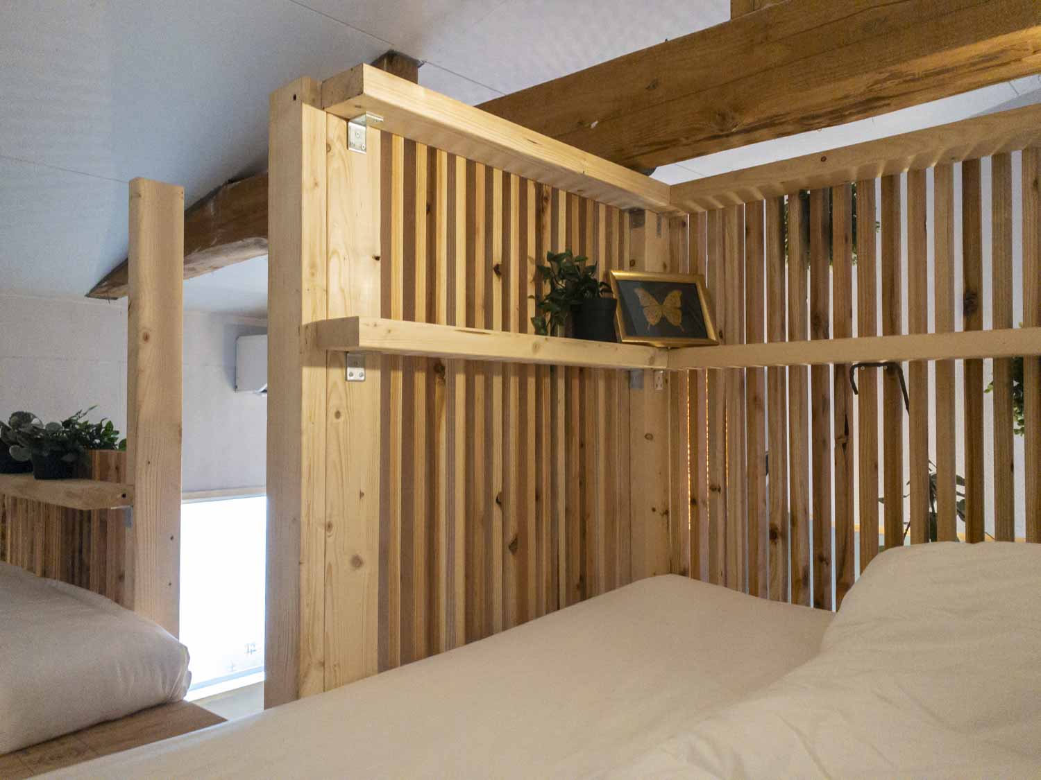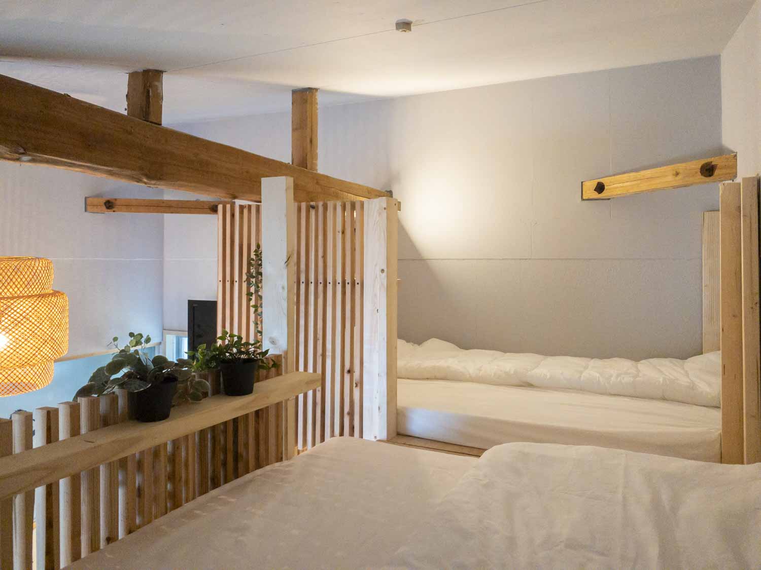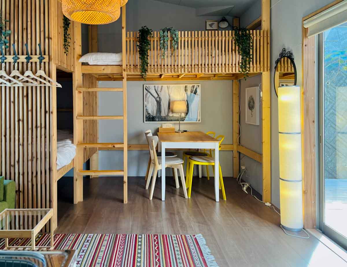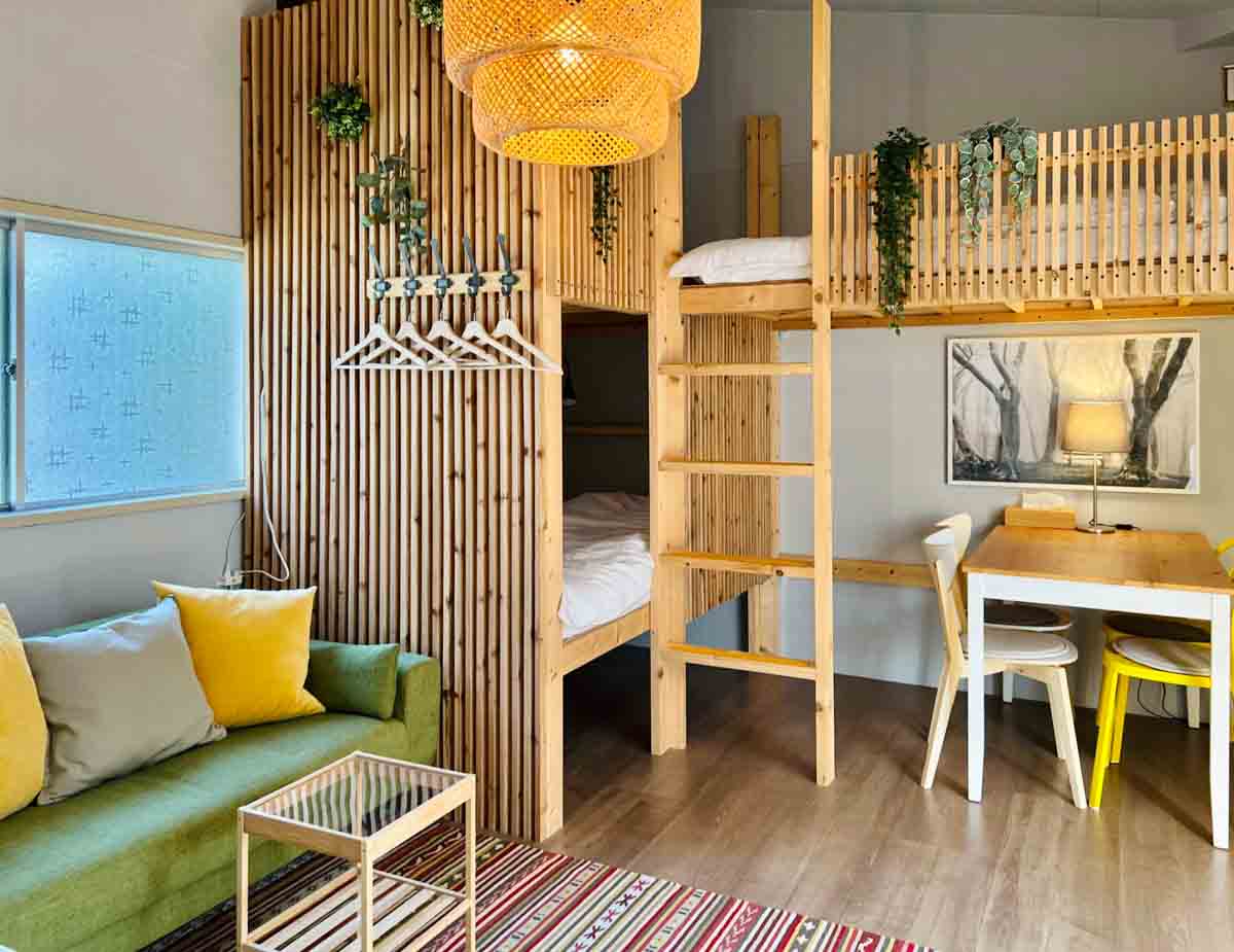 サーフキャンプ103は、一軒家とタイニーハウス(離れ)という二つの部屋があります。また母家と離れの間には、デッキスペースがあり、バーベキューもできます(BBQセット有料貸出可能)。コンパクトでありながら異なる2つの空間を使って、時には外のデッキスペースで、バーの様にワイワイと、時には静かにチルな音楽でもかけながらゆっくりと、いろんな楽しみかたのある、おもしろ一棟。一軒家なので、隣を気にせず家族やグループでの宿泊に最適です。またキッチン・洗濯機もあるので、長期滞在にも最適です。外用シャワー、サーフボード置き場も完備。ウェットスーツも外で洗えます。NETFLIX見たい放題(民放は映りません)。1人用サウナ付き