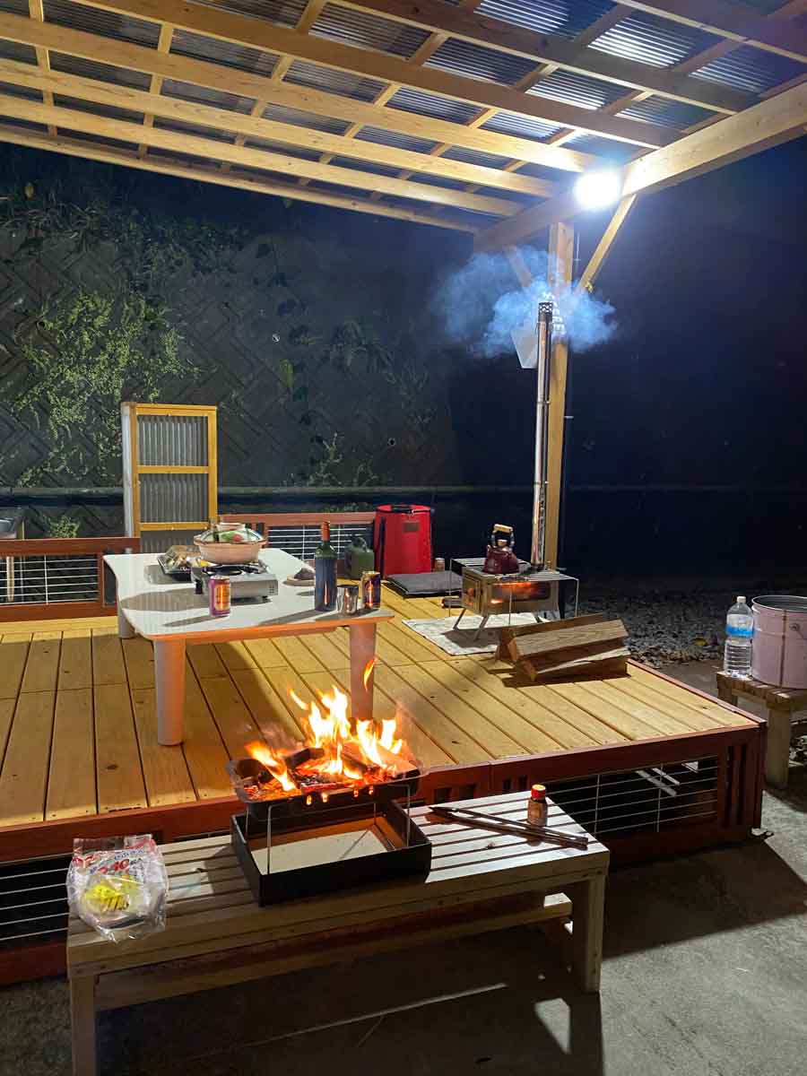 ウッドデッキ横にはバーベキュースペースもあり、バーベキュー用具を貸出しします。(予約、有料)