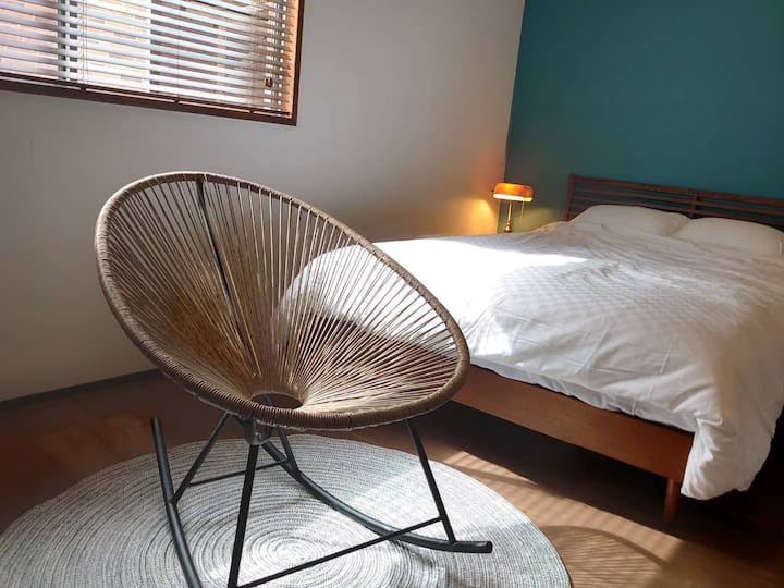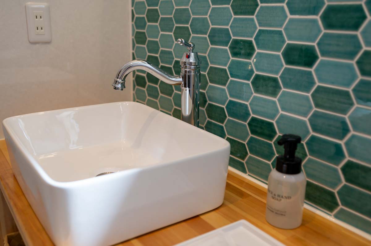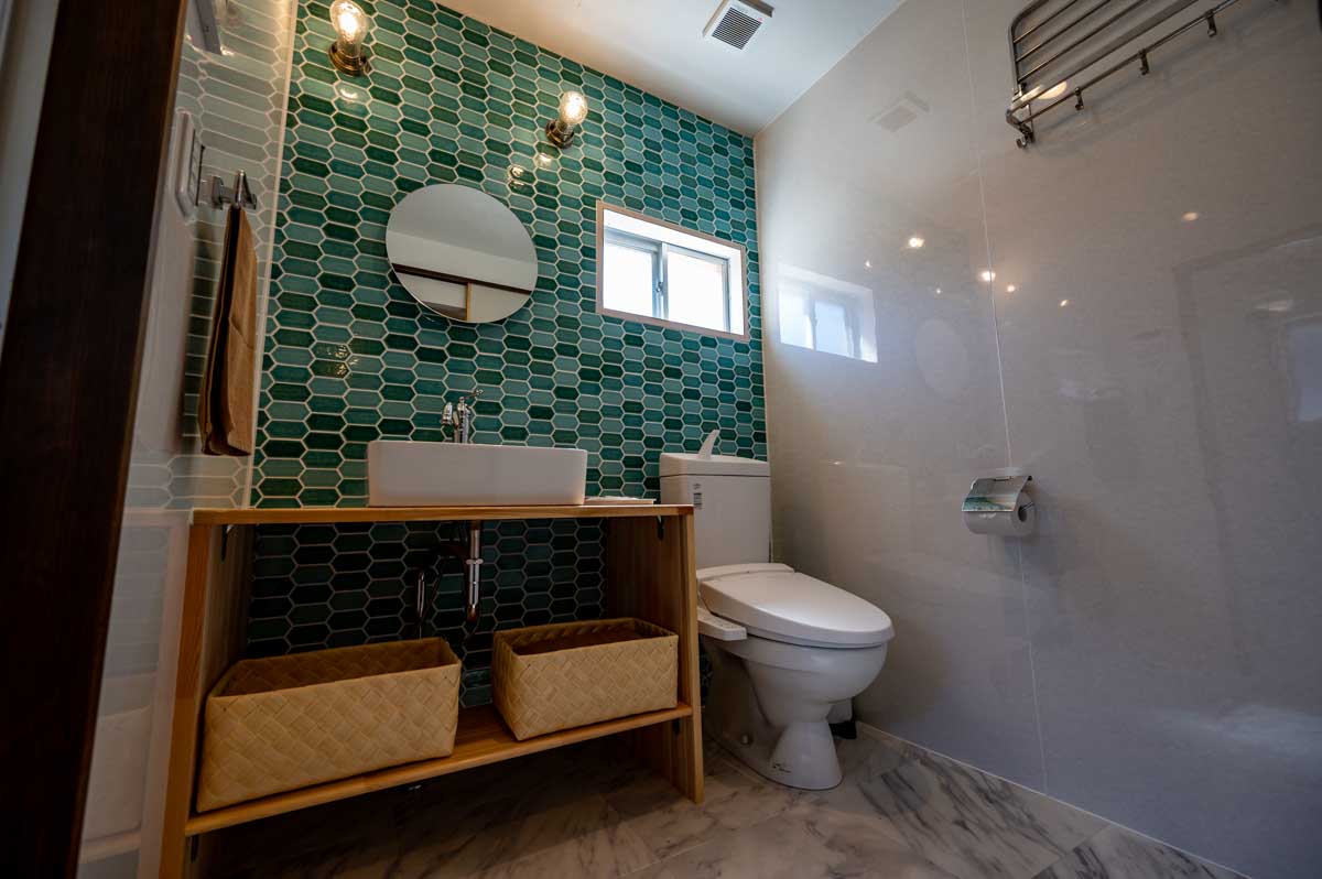ターコイズグリーンの洗面所から一日が始まり、朝食は広めのダイニングテーブルでコーヒーとトーストの香りに包まれ、お出かけの後にはロッキングチェアで揺れながらたわいもない話で時を過ごす。