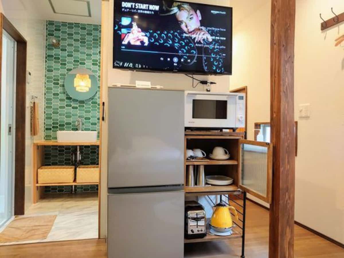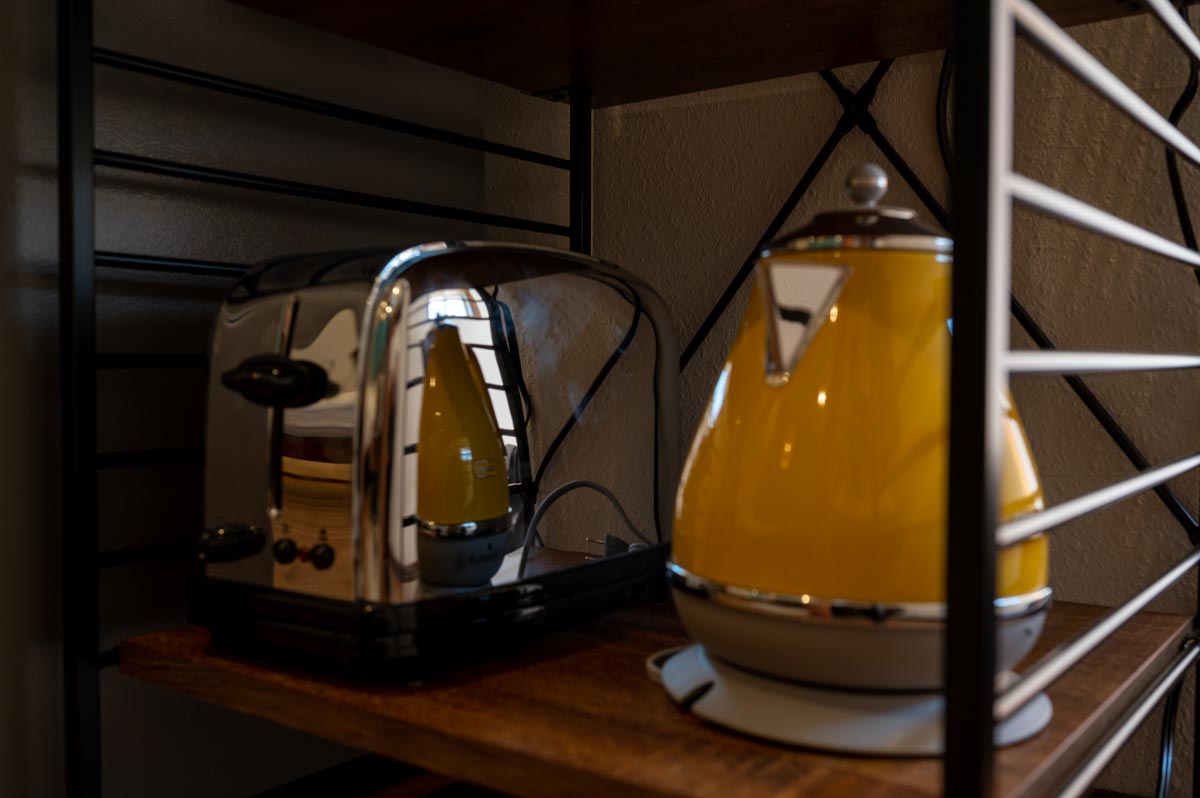 ◉ 短期から長期滞在のお客様までご満足頂けるよう充実したキッチン用品のラインナップ!BBQの時に便利なすぐそばキッチン!