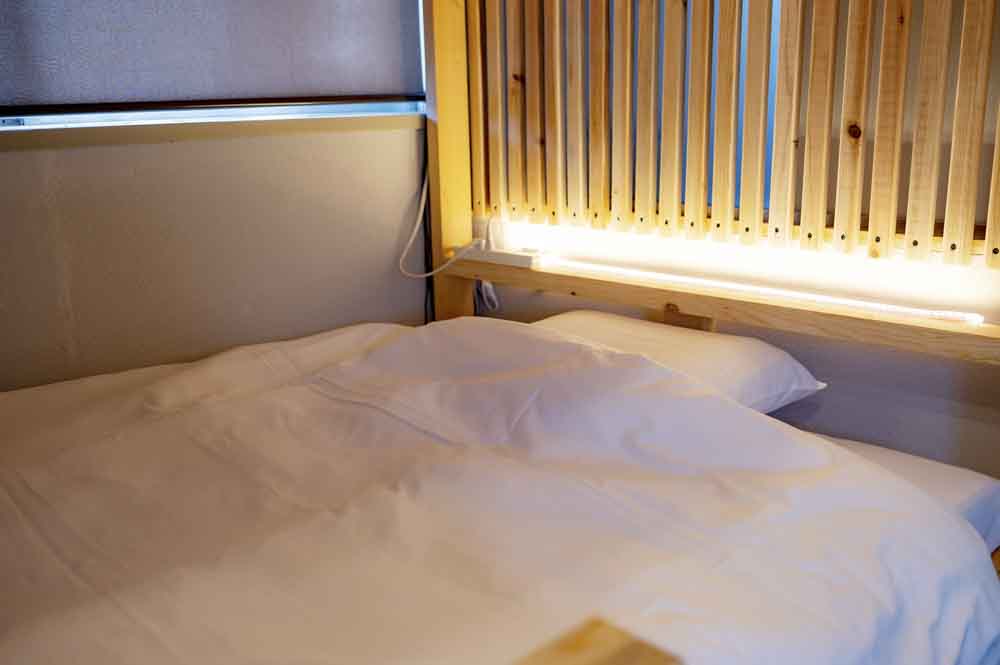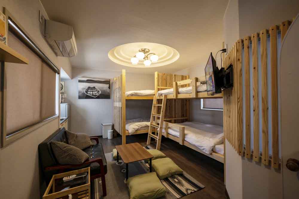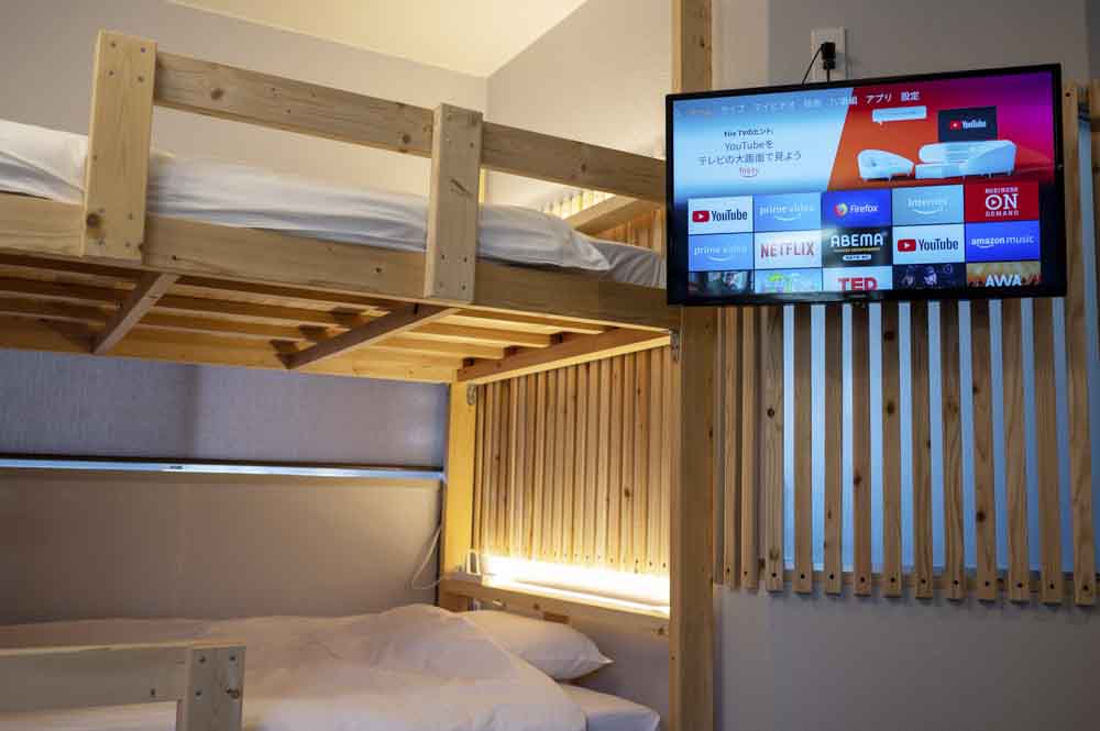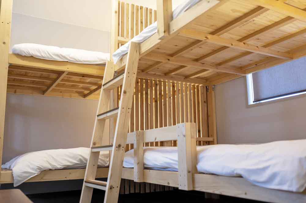 独立したセミダブルのベットが4つあるのでお子様連れの大家族でも快適に泊まれまる落ち着く一軒家です。