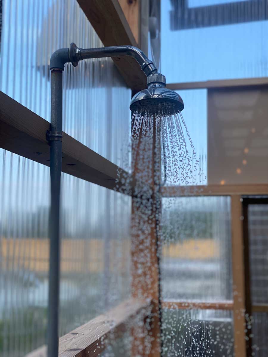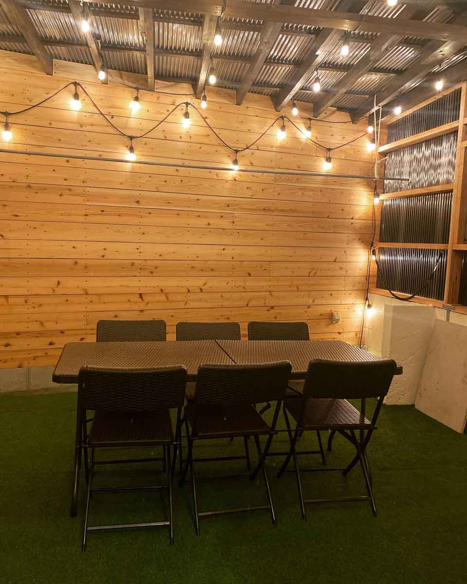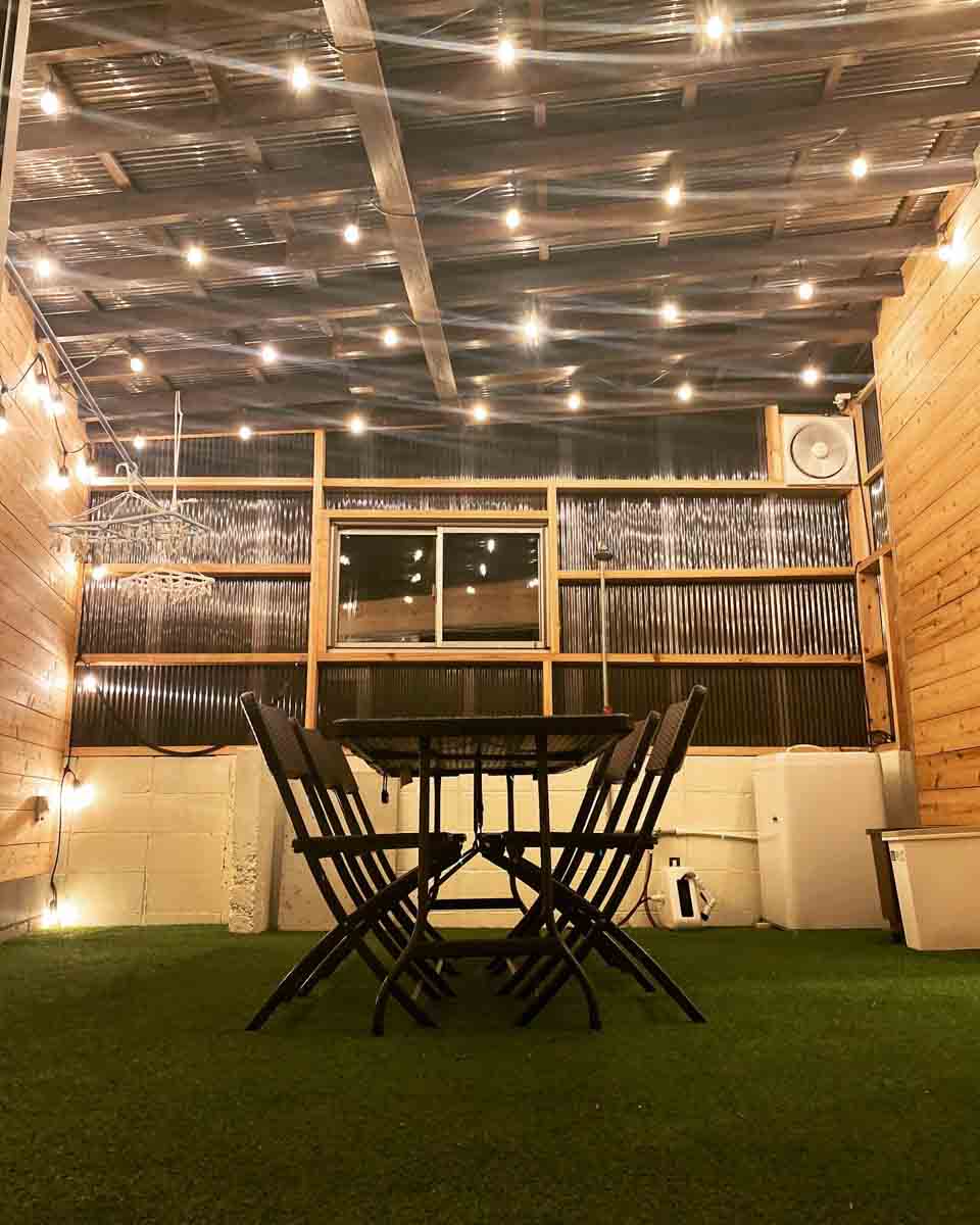 テラスにはストリングライトと外シャワーを設けており、夜もお洒落な雰囲気でBBQ等が楽しめます。