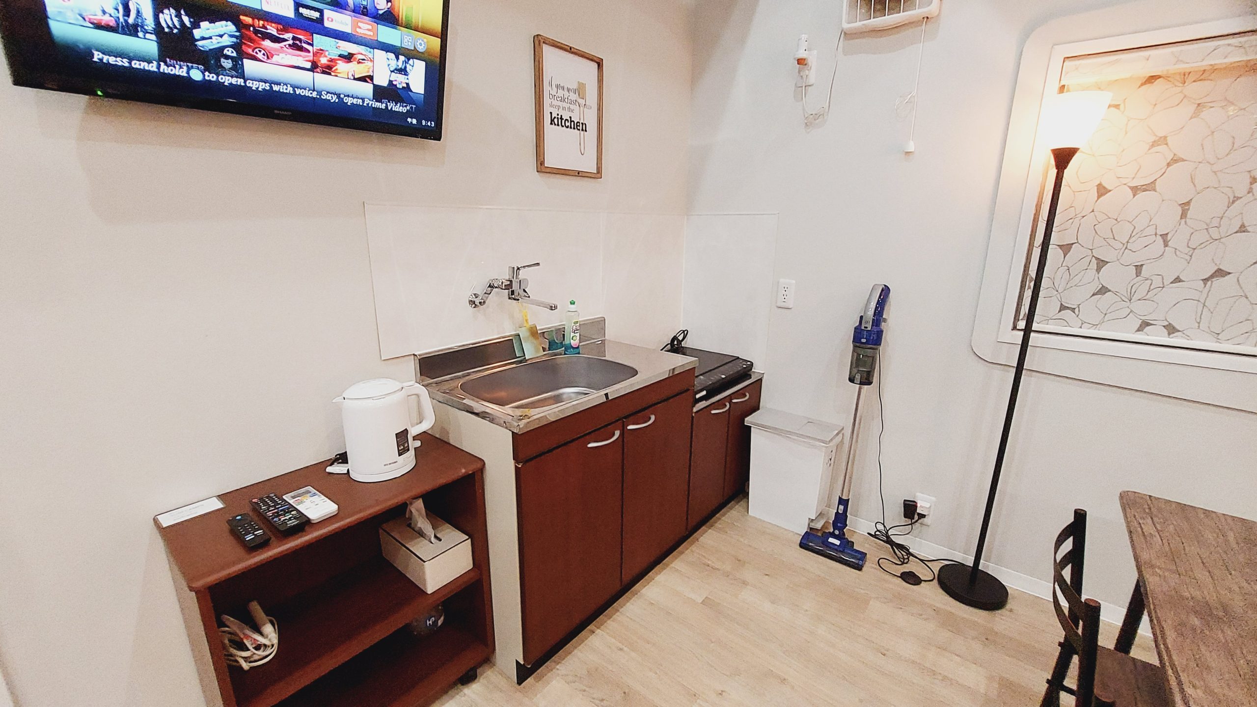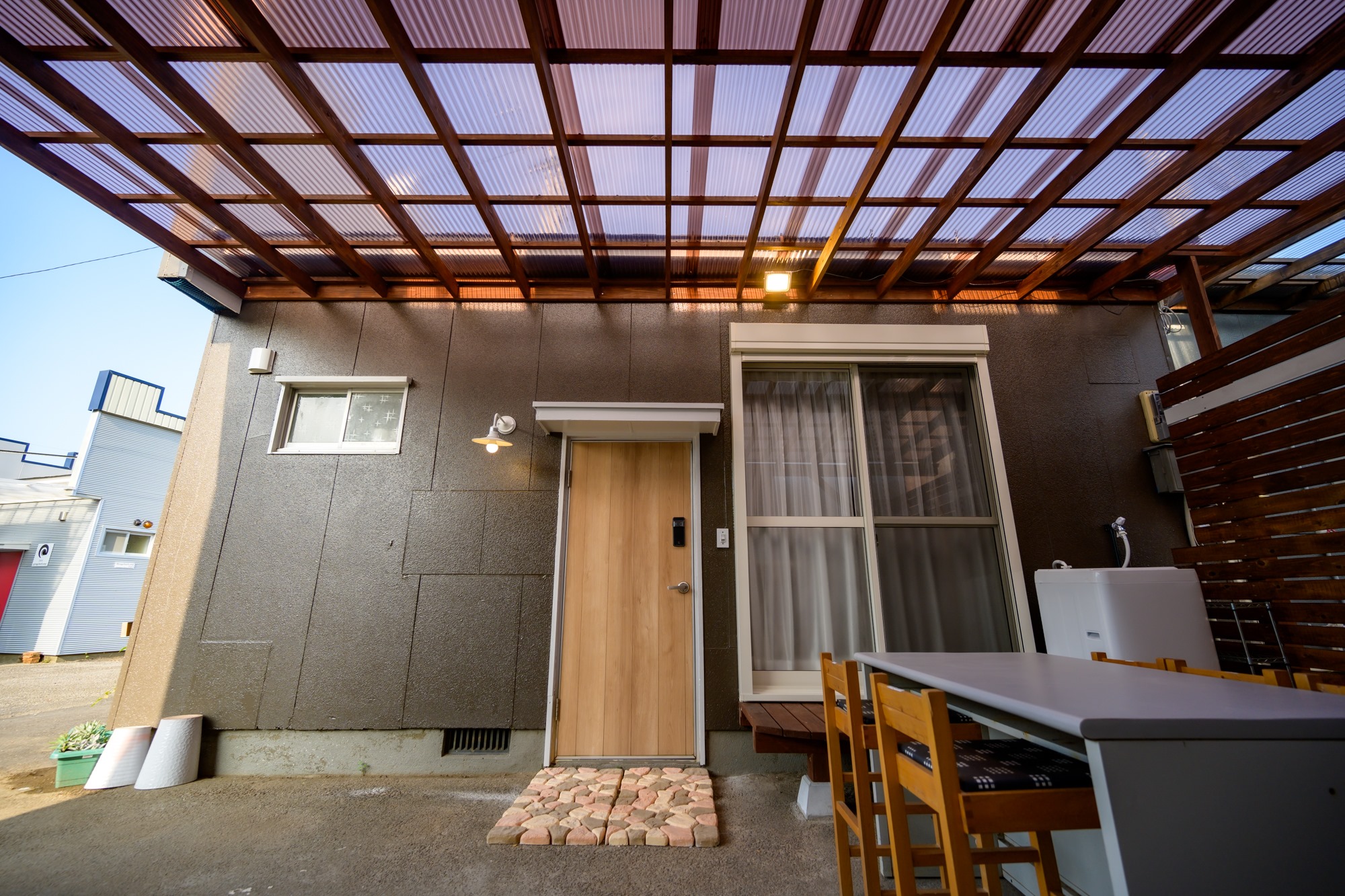 ホテル敷地内ではバーベキューも可能。ウェットスーツも外で洗えます。外用シャワーも完備。