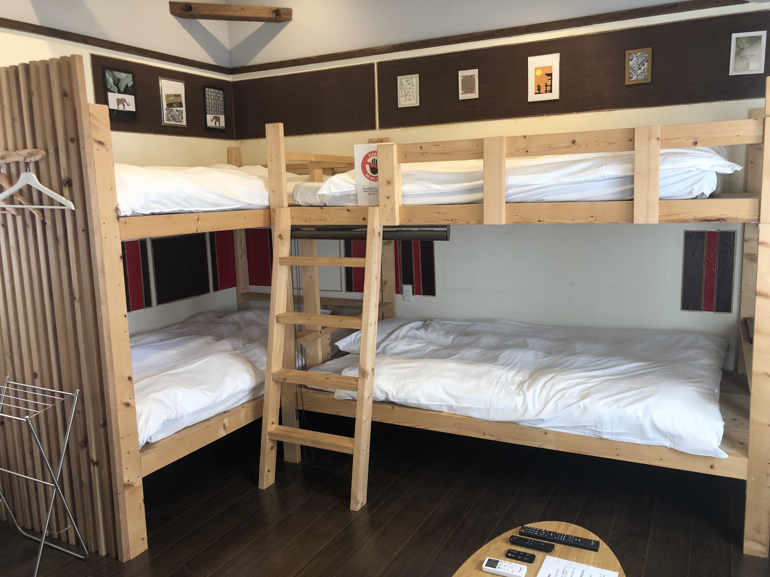 から日当たり良好のゲストハウス。目の前には大きなクヌギがあり、夏はカブトムシやクワガタも期待。室内はツインサイズの二段ベットが2台設置してあり、ゆったり一人で寝るもよし、お子さんと添い寝するもよし、アクティブファミリー向けのひと部屋です。近くの海で遊んだ後は、広々専用駐車スペースでBBQをしながら家族でワイワイと、朝まで楽しく語り合えます。テレビ(民放は映りません)。